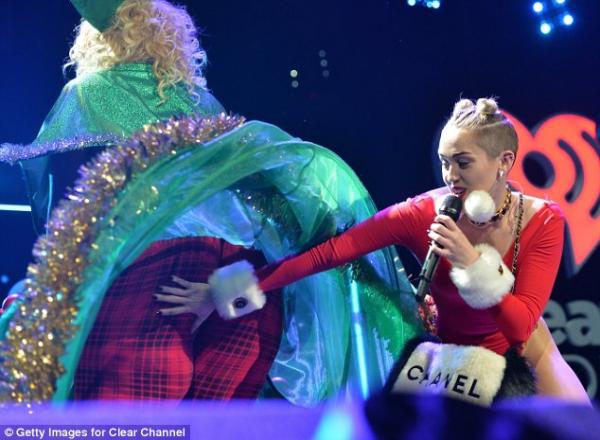 النجمة البالغة من العمر 21 عاماً قامت بحركات فاضحة من خلال لمس مؤخرات الراقصات المتنكرات بشجرة عيد الميلاد وغيرها من وحي المناسبة.